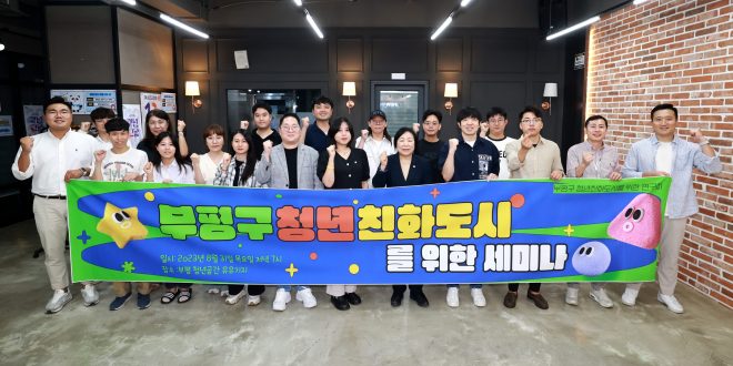 최근 31일 부평구의회(의장 홍순옥) 의원연구단체 ‘부평구 청년친화도시를 위한 연구회(대표의원 정예지)’가 유유기지 부평에서 <부평구 청년친화도시를 위한 세미나>를 개최했다.