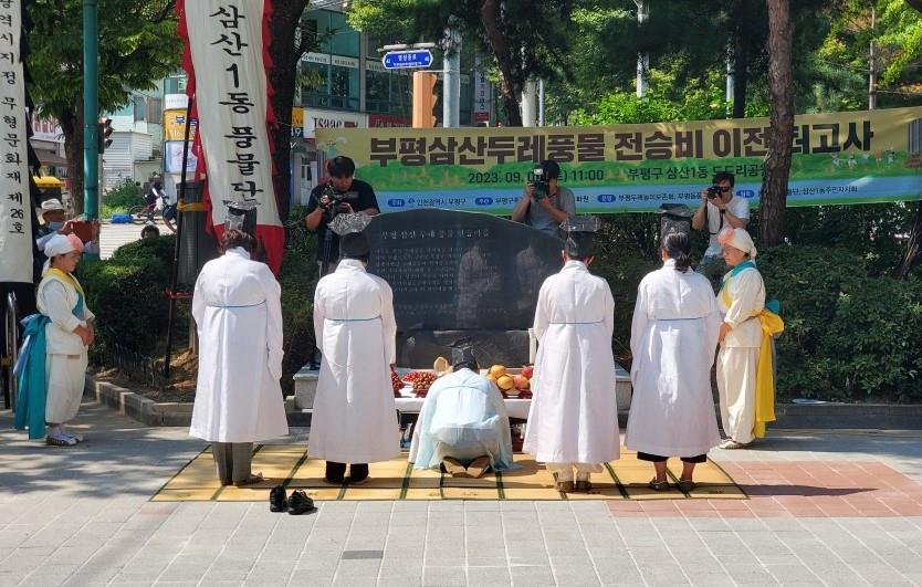 최근 2일 부평구(구청장 차준택)는 지부평풍물대축제 발원지 삼산동 도드리공원에서 부평두레풍물 전승비 이전 터고사를 지냈다.