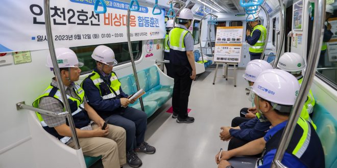 훈련내용은 ▶ 제동공기 압력 저하로 역과 역 사이에 열차 비상정차 ▶ 전차선 단전 후 안전요원-1 고장열차 탑승 ▶ 후속열차를 구원열차로 지정하여 안전요원-2 탑승 ▶ 전차선 급전 후 구원열차와 고장열차를 합병하여 차량기지로 회송하는 최악의 상황 순으로 진행됐다.