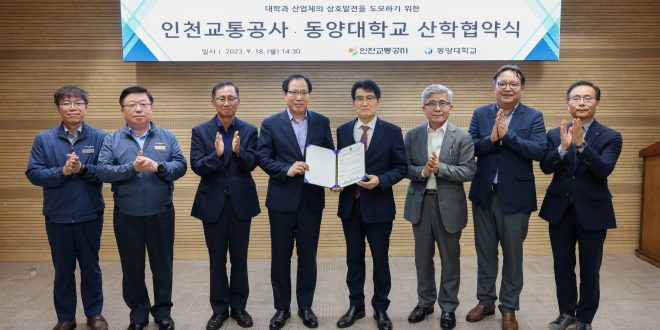 18일 인천교통공사(사장 김성완)는 동양대학교(총장 이하운)와 도시철도 산업발전과 전문인력 양성을 위한 산학협력 협약을 체결했다고 밝혔다.