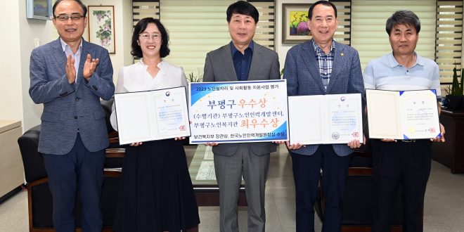 26일 부평구(구청장 차준택)는 보건복지부와 한국노인인력개발원에서 실시한 ‘2023년(2022년 실적) 노인일자리 및 사회활동지원사업 우수 수행기관·지자체 평가’에서 우수상을 수상하며 2년 연속 우수지자체로 선정됐다고 밝혔다.