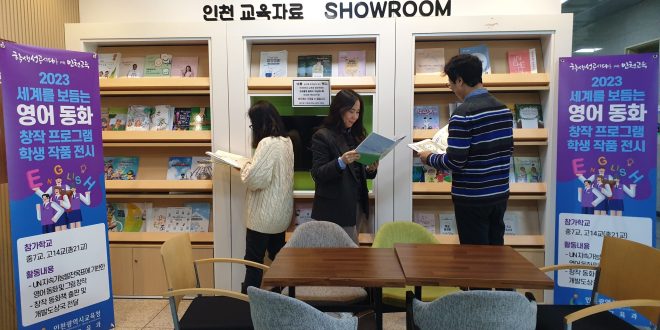 인천시교육청은 시교육청 정보센터 1층 로비에서 영어 동화 창작프로그램 학생 작품을 2024년 2월까지 전시한다.
