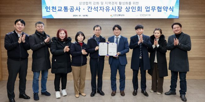 18일 인천교통공사(사장 김성완)는 전통시장 활성화를 위해 간석자유시장과 함께 “퇴근길 장보기” 사업 추진을 위한 업무협약을 체결했다고 밝혔다.