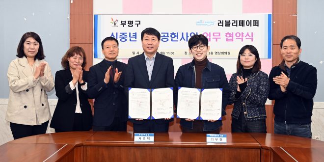 최근 113일 부평구(구청장 차준택)는 구청 상황실에서 사회적기업 ‘러블리페이퍼’와 신중년 사회공헌활동 사업을 위한 업무 약정을 체결했다.