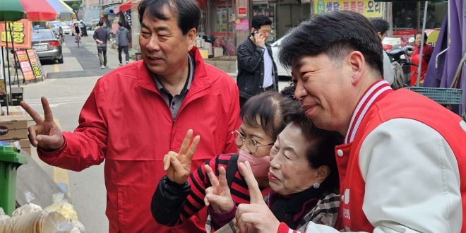 한편, 이날 시장에는 주말을 맞아 많은 인파가 몰려 힘든 가운데 서도 기념촬영에 응하며, 연신 즐겁게 주민들을 대하는 그의 모습과 열정에 깊은 감동을 자아냈다.