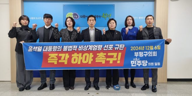 부평구의회 민주당 소속 의원들은 윤석열 대통령의 자진 사퇴 및 국회의 즉각적인 탄핵절차 이행 요구 등 강경한 입장으로 이를 위해 끝까지 싸울 것이라고 입장을 밝혔다.