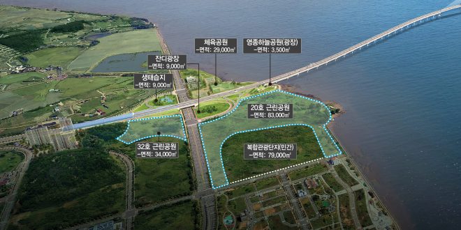 영종과 청라를 잇는 관광벨트 역할을 할 수 있도록 20호와 32호 근린공원을 통합 개발하고, 최대 40%의 시설면적을 확보해 다채로운 관광형 시설을 도입할 계획이다.