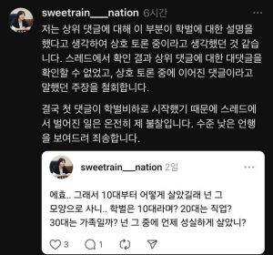 이 의원은 “상위 댓글에 대해 학벌에 대한 설명을 하고 토론 중이라고 생각했다”며 “결국 첫 댓글이 (저의) 학벌 비하로 시작했기 때문에, 토론 중에 이어진 댓글이라고 말했던 주장을 철회한다”고 했다.