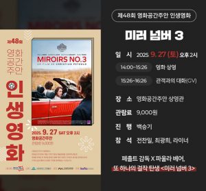 이번 행사는 제78회 칸국제영화제 감독 주간 초청작인 ‘미러 넘버 3’를 상영하며, 상영 후에는 특별한 관객과의 대화(GV)가 이어질 예정이다.