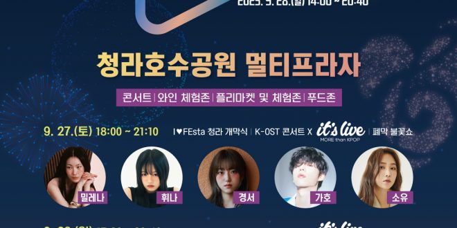 인천관광공사가 주관하는 ‘2025 I♥FEsta 청라 & 청라 페스티벌’이 9월 27일(토)과 28일(일) 이틀간 청라 호수공원 멀티프라자에서 열린다.