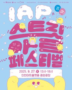 인천문화재단-인천아트플랫폼은 9월 27일(토) 오후 1시부터 인천아트플랫폼 중앙광장에서 거리공연과 예술놀이 프로그램으로 구성된 거리예술축제 ‘IAP 스트릿 아트 페스티벌’을 연다. 올해엔 장르를 넘나드는 거리공연 9편과 관객 참여형 예술놀이 프로그램 5종이 마련됐다.