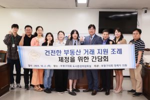 부평구의회 정예지 의원(더불어민주당 비례)은 2일 부평구의회 도시환경위원회실에서 「인천시부평구 건전한 부동산 거래 지원 조례」제정을 위한 간담회를 개최했다.