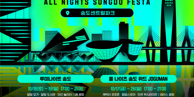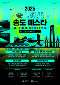 인천관광공사는 오는 10월 17일부터 26일까지 송도센트럴파크 일대에서 「2025 올 나이츠 송도 페스타」를 개최한다고 밝혔다. 이번 행사는 대한민국 제1호 야간관광 특화도시 인천을 대표하는 가을 시즌 야간 프로그램으로, 노을과 야경이 아름다운 송도를 배경으로 다채로운 문화‧체험 행사가 펼쳐진다.