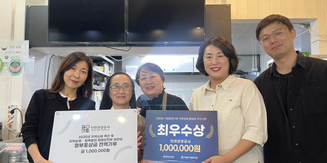 인천관광공사는 14일 ‘2025년 지방공공기관 지역경제 활성화 우수사례’ 행정안전부 장관상(최우수상) 포상금을 경제적으로 어려움을 겪는 지역 청년들을 위해 기부했다.