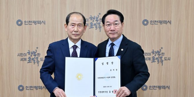 인천관광공사 제5대 사장으로 임명된 유지상 사장이 지난 31일 인천시장으로부터 임명장을 수여받고 공사 임직원들과 간담회를 가진 후 본격적인 업무를 시작했다.