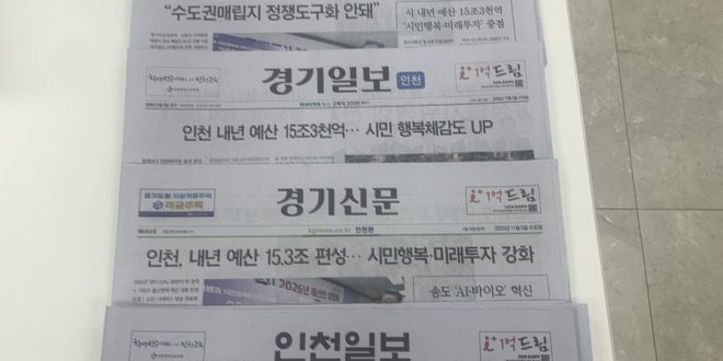 [오늘] 2025년 11월 5일(수) – 인천시, 2026년 예산 15조 3,129억원 편성…전년 대비 2.5% 3,699억원 증가 THE BUPYEONG WEEKLY 2025/11/05 09:00 오늘 Leave a comment 227 Views 인천시, 2026년 예산 15조 3,129억원 편성…전년 대비 2.5% 3,699억원 증가 – 부평위클리