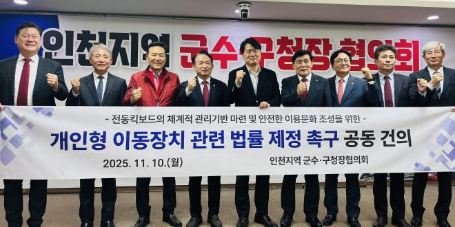 인천 지역 군수·구청장들이 급증하는 전동킥보드 등 개인형 이동장치(PM) 사고를 예방하고 안전한 보행 환경을 조성하기 위해 국회에 관련 법률 제정을 강력히 촉구하고 나섰다.