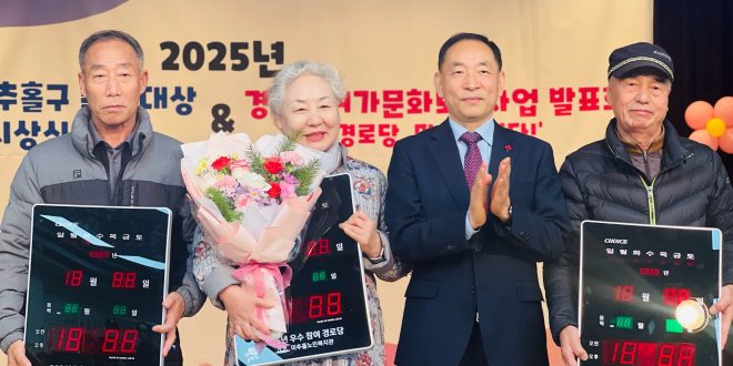 미추홀노인복지관은 지난 11월 17일, 복지관 대강당에서 제15회 미추홀구 문예대상 시상식 및 경로당 사업발표회 ‘경로당, 마을을 잇다!’를 성황리에 개최했다고 밝혔습니다. 이날 행사에는 경로당 회원과 내빈 등 450여 명이 참석하여 지역 어르신들의 열정과 성과를 축하하는 뜻깊은 자리가 마련되었다.