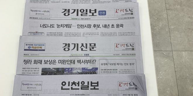 [오늘] 2025년 12월 15일(월) – 내년 시 잠정 본예산 15조 3259억 THE BUPYEONG WEEKLY 2025/12/15 08:44 오늘 Leave a comment 48 Views 내년 인천시 잠정 본예산 15조3259억… 참전유공자 수당 증액