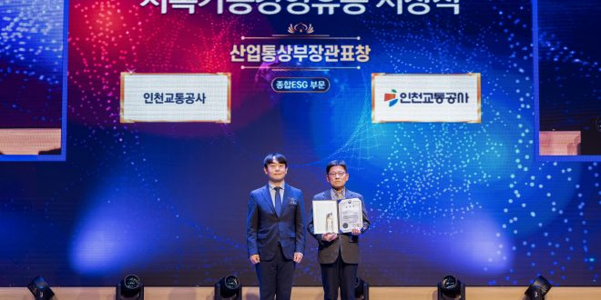 인천교통공사는 지난 16일 열린 ‘2025년 지속가능경영유공 정부포상 시상식’에서 종합 ESG 부문 산업통상부장관 표창을 수상했다고 17일 밝혔다.