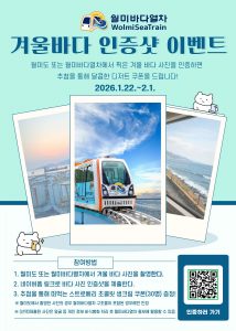 인천교통공사는 겨울철 월미도 바다의 풍경을 시민과 함께 나누기 위해 ‘월미바다열차 겨울 사진 인증 이벤트’를 개최한다고 밝혔다.