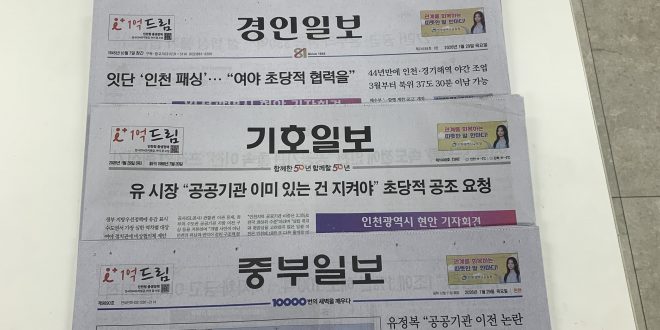 [오늘=인천 최전선] 2026년 1월 29일(목) – 잇단 인천 패싱 THE BUPYEONG WEEKLY 2026/01/29 08:23 오늘 Leave a comment 63 Views 잇단 ‘인천 패싱’, “여야 초당적 협력을”… 유정복, 공공기관 2차 이전론 비판