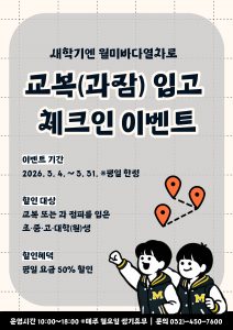 교복·학과 점퍼 착용 시 3월 평일 이용요금 50% 할인