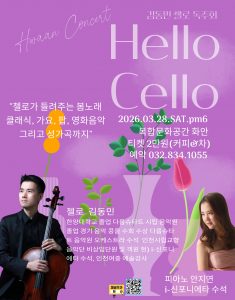 인천 중구에 자리한 복합문화공간 화안에서 오는 28일 오후 6시에 첼로 독주회 「헬로, 첼로」를 타이틀로 i-신포니에타의 수석첼리스트 김동민이 연주하고 안지연이 반주를 맡는다.
