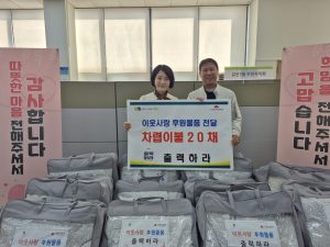 이날 전달된 차렵이불은 홀몸 어르신과 저소득 가구 등 취약계층에 지원될 예정으로, 대상자들의 생활 여건 개선에 도움이 될 것으로 기대된다.