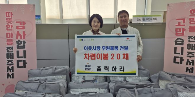부평구 갈산1동은 16일 지역기업 ㈜출력하라로부터차렵이불 20채를 전달받았다고 밝혔다.