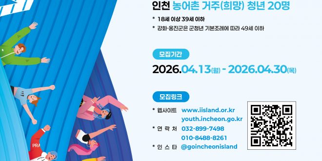 인천광역시와 인천관광공사는 농어촌 지역에서 새로운 기회를 찾고 정착을 꿈꾸는 청년들을 위해 ‘2026 인천 농어촌 청년 역량강화 프로그램 i-섬웨이브’(이하 i-섬웨이브’) 참여자를 오는 4월 30일(목)까지 모집한다고 밝혔다.