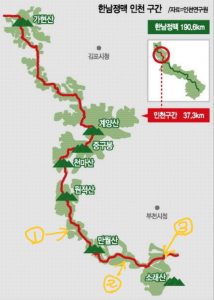 [사진으로 부평을 읽어주는 남자 16] 錦馬山 THE BUPYEONG WEEKLY 2026/04/20 08:57 HEAD LINE, 富平 文化 이야기 Leave a comment 84 Views 박명식 향토사학자(부평문화원 이사) 한남정맥 부평구간은 노란표시 ‘1번 함봉산, 2번 금마산 또는 부개산, 3번 大山=臥牛山(와우산)’ 이다. ‘산의 형국이 비단결 같은 말 잔등 같아 생긴 이름에서 유래’ 되었고, 근래에 부개산 이라고도 부르고 있다. ※철마산은 일제시대 지명이다.
