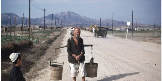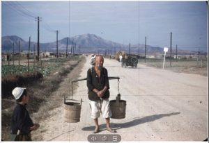 컬러 사진은 소화토지구획정리지구內의 신작로(=부평로) 부평역에서 산곡입구삼거리까지 비포장도로를 조성.(1948.10. Norb-Faye 촬영)