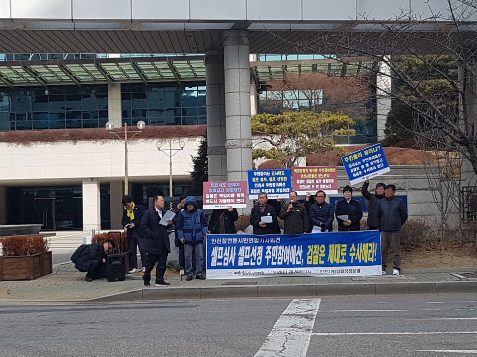 인천참언론시민연합(이하 인천참언론)는 29일 오전 11시 인천지방검찰청 앞에서 인천주민참여예산 운영과 관련해서 검찰에 박남춘 시장을 대상으로 고발한 사건을 신속하게 수사하라는 기자회견을 가졌다.