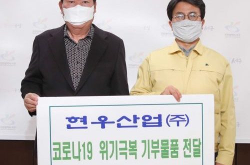 현우산업은 지난 17일 서구를 찾아 마스크 7천 매(5백만 원 상당)를 전달했다. 코로나19 예방을 위한 개인 방역물품 구입에 어려움을 겪는 이웃에게 나눔의 손길을 전하기 위해서다.