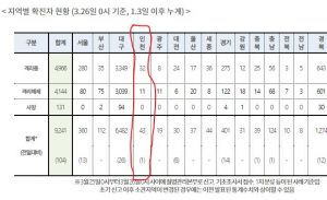 [3/26/0시] 확진 43명(1명), 격리 32명(-), 완치퇴원 11명(1명), 사망 0명 THE BUPYEONG WEEKLY 2020/03/26 10:19 HEAD LINE, 코로나19 지수 Leave a comment 1,398 Views [3/25/0시] *( )전일대비 확진 43명(1명), 격리 32명(-), 완치퇴원 11명(1명), 사망 0명 – 질병관리본부
