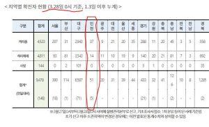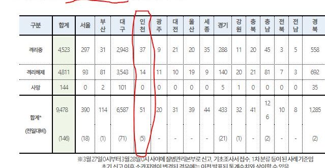 [3/28/0시] 확진51명(5명), 격리 37명(4명), 완치퇴원14명(1명), 사망0명 THE BUPYEONG WEEKLY 2020/03/28 13:38 HEAD LINE, 코로나19 지수 Leave a comment 1,126 Views -확진51명(5명), 격리 37명(4명), 완치퇴원14명(1명), 사망0명 [질병관리본부]
