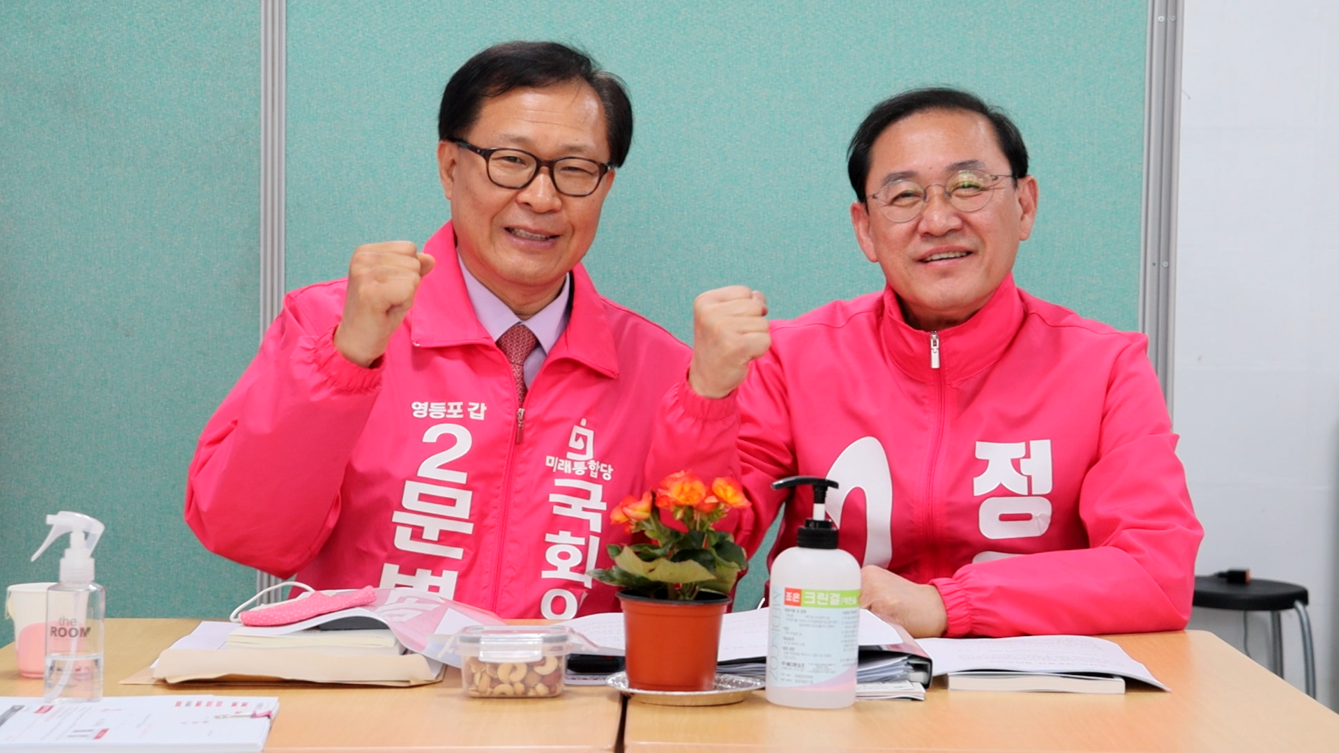 이어 문 후보는 “지금은 두 후보 모두 미래통합당에서 한솥밥을 먹게 됐다” 며, “정유섭 후보를 지원해 드리고, 저도 지원을 받으려고 응원 영상을 찍게 됐다”고 설명했다.