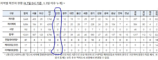 [4/7/0시] 확진80명(0명:해외0명, 지역0명), 격리53명(-), 완치퇴원27명(-), 사망0명(-) [질병관리본부]