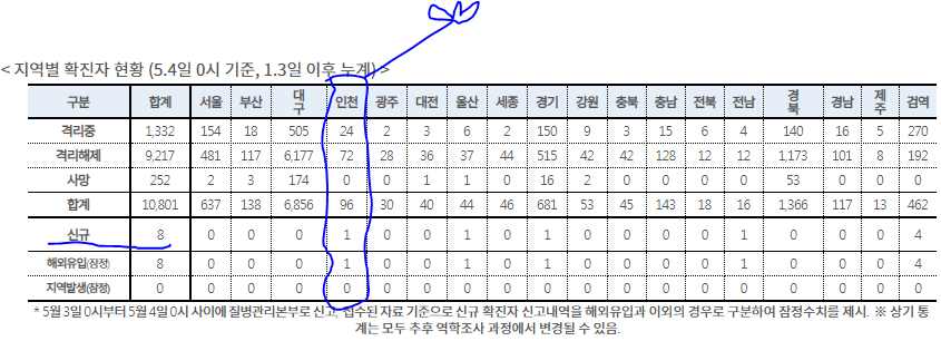 [5/4/0시] 코로나19 인천지수(전일대비 추가 1명: 해외 유입) 확진96명(1명:해외1명,지역0명),격리24명(1명),완치퇴원72명(-),사망0명(-) [질병관리본부]