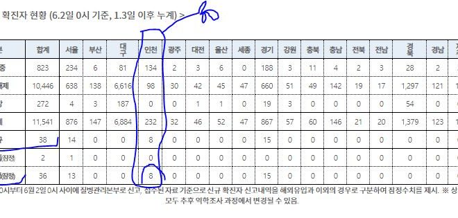 [6/2/0시] 코로나19 인천지수:확진 232명(전일대비 추가 8명: 지역감염) 확진232명(8명:해외0명,지역8명),격리134명 (8명),완치퇴원98명(-),사망0명 [질병관리본부]