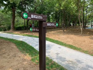 1코스인 대월어린이공원과 반월어린이공원(870m)은 ‘즐거움이 묻어나는 건강산책로’를 주제로 주민들이 공원 산책과 체력단련기구를 이용할 수 있도록 조성했다. 이용자들이 편하게 걸을 수 있도록 기존의 노후 된 보도블럭을 철거해 탄성포장재로 재포장 했으며, 정자도 설치했다.