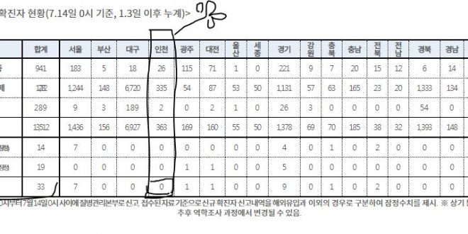 [7/14/0시]코로나19인천지수:확진363명(전일대비 추가 0명) 확진363명(0명:해외0명,지역0명),격리26명(3명),완치퇴원335명(3명),사망2명(-) [질병관리본부]