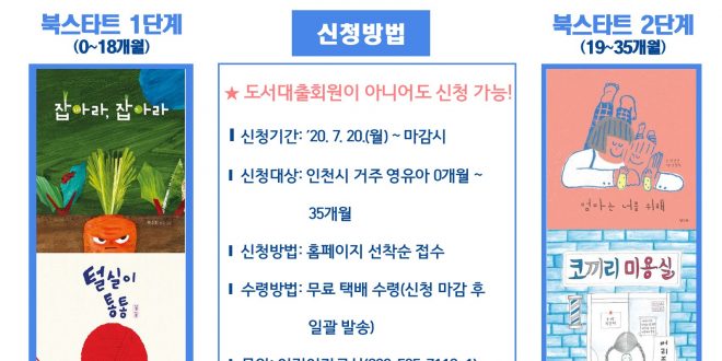 북스타트 책꾸러미 신청은 7월 20일부터 홈페이지를 통해 선착순으로 모집하며, 자녀가 도서대출 회원 가입자가 아니어도 신청이 가능하다.