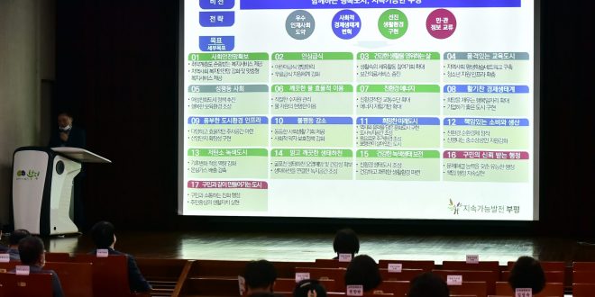 17일 부평구는 구청 대회의실에서 ‘부평 지속가능발전보고서 작성 및 기본계획 수립’ 연구용역 최종보고회와 ‘2020년 제2차 지속가능발전위원회 회의’를 연달아 실시했다.