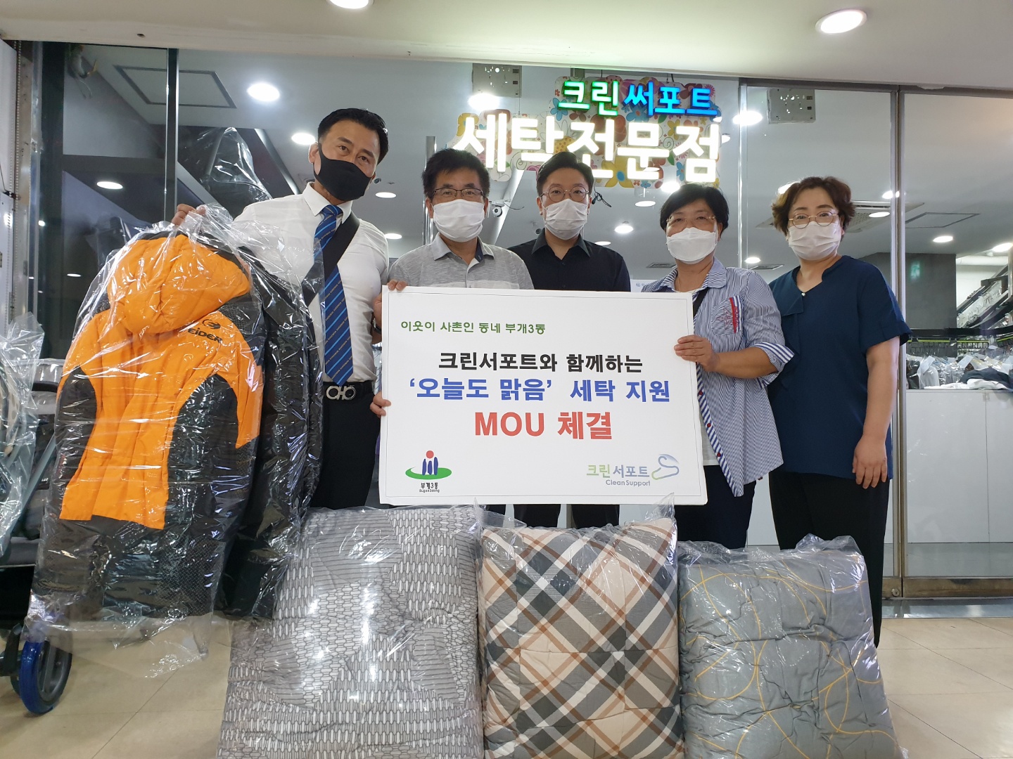 부개3동 행정복지센터는 14일 삼산동에 위치한 ㈜크린서포트와 지역 내 어려운 이웃들을 위한 세탁 지원사업 협약을 체결했다.