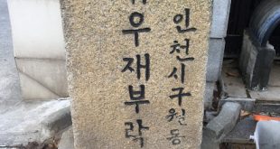 글: 이장열 편집인 ‘대우재부락. 인천시구월동’ 새겨진 비석은 현재도 구월동 주택가 대문 옆에 서 있다. 어디에 있던 비석인지 몰라도, 원래 자리는 아닌 듯하다. 2005년 중앙근린공원 옆 대우재고개 주거환경개선사업이 시작되면서 비석의 위치가 바뀐 것으로 추정된다.