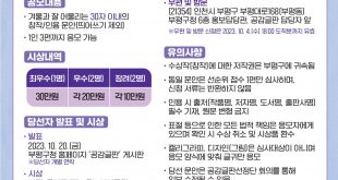 by 정재환 기자 부평구(구청장 차준택)가 9월 4일부터 10월 4일까지 한 달간 ‘2023년 겨울편 공감글판’ 문안을 공모한다. 공모 대상은 겨울과 어울리면서 구민들에게 사랑과 희망을 전할 수 있는 30자 이내의 창작·인용 글귀다. 인천 시민이거나 인천 소재 직장인, 학생이라면 누구나 참여할 수 있다. 공감글판 문안을 제출하려는 주민은 부평구 누리집 ‘공감글판’ 게시판에서 응모하면 된다. …