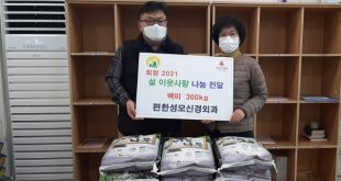 by 김성화 기자 산곡4동 행정복지센터는 최근 편한성모신경외과의원으로부터 설 이웃사랑 나눔 쌀 300㎏을 전달받았다. 편한성모신경외과의원은 지난 2016년부터 매년 명절마다 사랑의 쌀을 기부하며 이웃사랑에 앞장서고 있다. 이번 기부한 쌀은 저소득 홀몸노인, 장애인, 한부모 가정 등에 배부될 예정이다. 유관옥 편한성모신경외과의원 원장은 “설 명절 어려운 이웃에게 조금이나마 도움을 주게 돼 기쁘게 생각한다”며 “앞으로도 이웃을 …