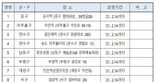 by 이장열 편집인 18일 인천시 방역당국은 지난 해 12월 15일부터 13군데에서 운영해온 임시선별검사소를 8군데로 축소하여, 1월 17일부터 2월 14일까지 연장 운영한다고 밝혔다. 2월 14일까지 운영하는 인천 임시선별검사소 현황입니다. 중구 운서역 (중구 흰바위로 59번길26) 미추홀구 주안역 (미추홀구 주안로 95-19) 연수구 원인재역 (연수구 경원대로 285) 연수구 송도 미추홀타워 (연수구 갯벌로 12) 남동구 …